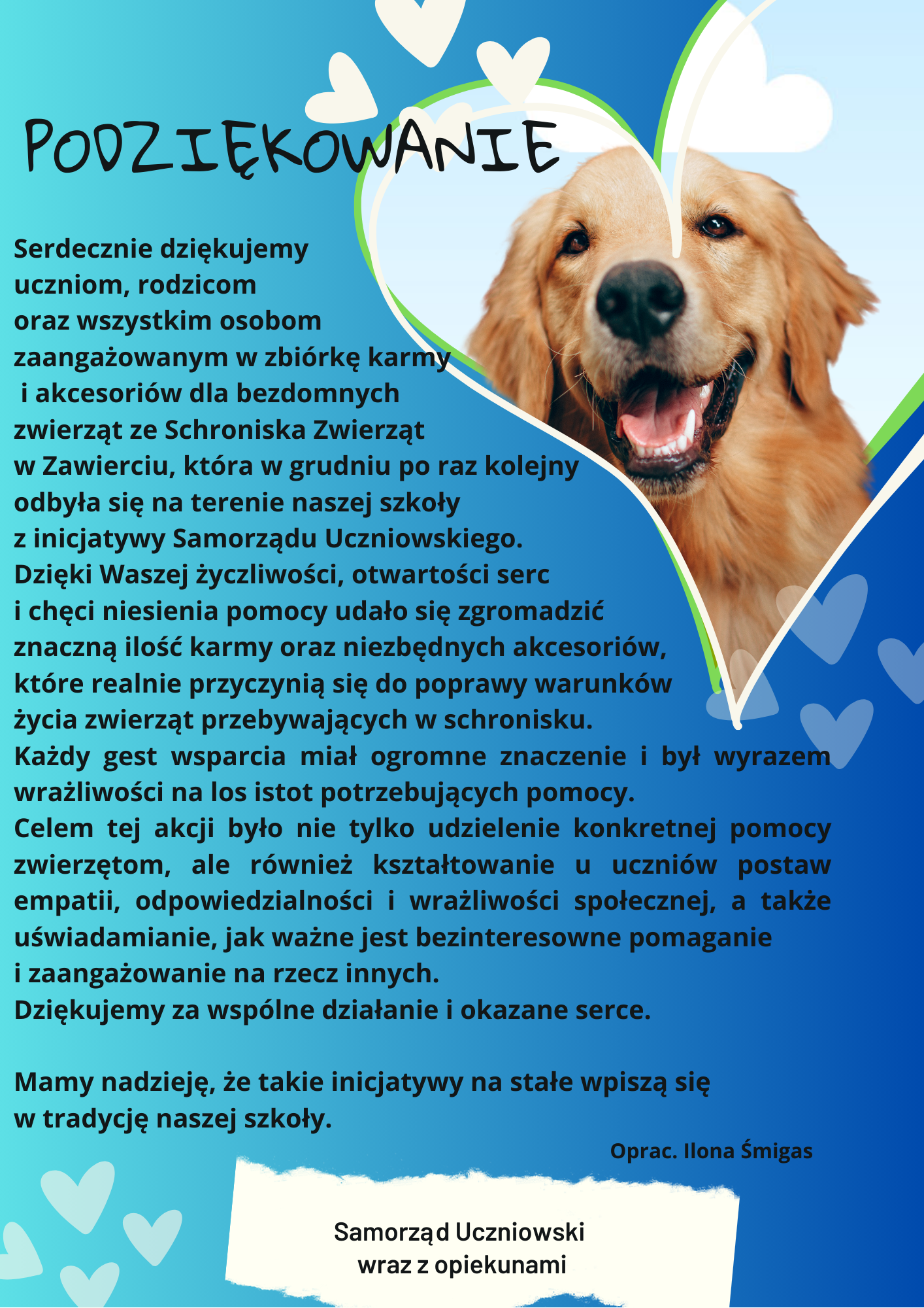 Podziękowanie - zbiórka karmy i akcesoria dla bezdomnych zwierząt