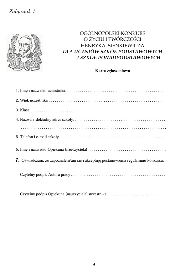 Regulamin Ogólnopolskiego Konkursu o Życiu i Twórczości Henryka Sienkiewicza